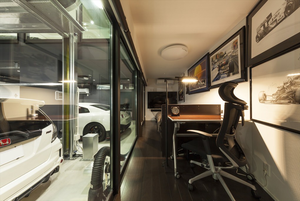 リフトで持ち上げた愛車を2階のLDKで眺められるガレージハウス